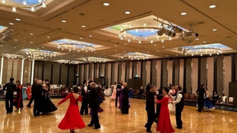 ダンス会場は豪華でシャンデリアも素晴らしいホール |