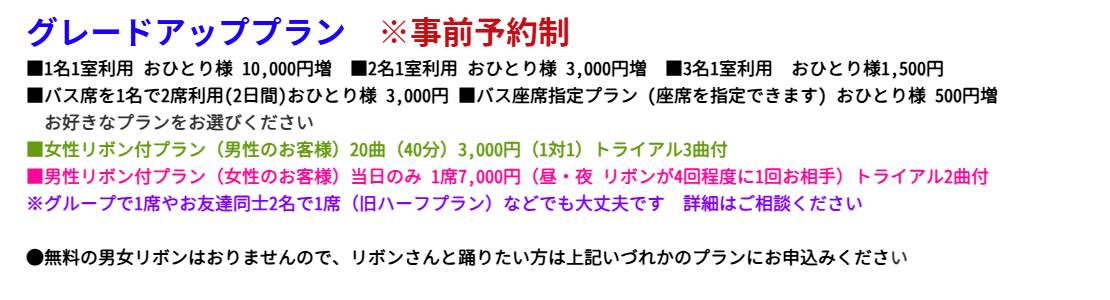 | スタンダード&ラテン、ぜひご出場ください。お客様同士は何種目でも無料、男女リボンとは1曲500円とリーズナブル |