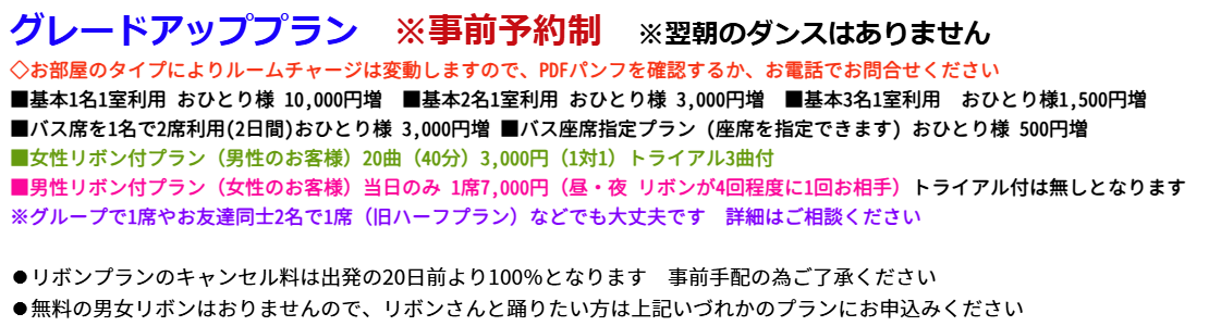 | スタンダード&ラテン、ぜひご出場ください。お客様同士は何種目でも無料、男女リボンとは1曲500円とリーズナブル |