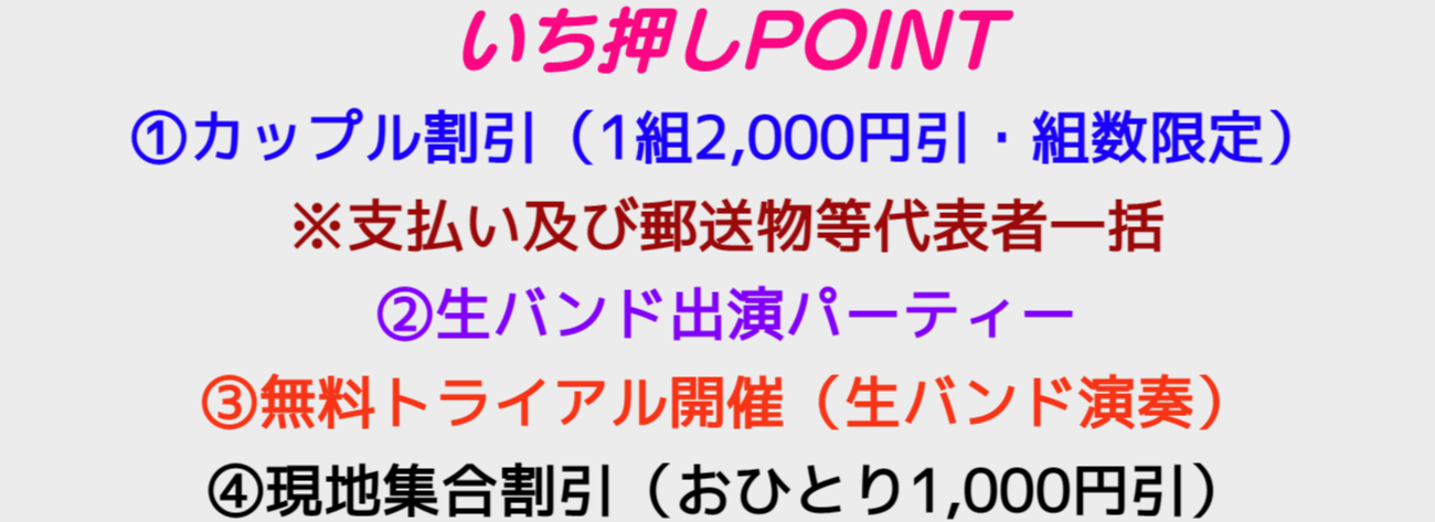トライアルも生バンドで踊れます。(夜のパーティー)