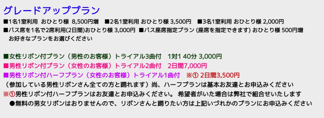 スタンダード&ラテン、是非ご出場ください。お客様同士は無料、何種目でも可。男女リボンと出場希望は1曲500円とリーズナブルです。