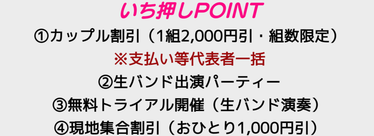 トライアルも生バンドで踊れます。(夜のパーティー)